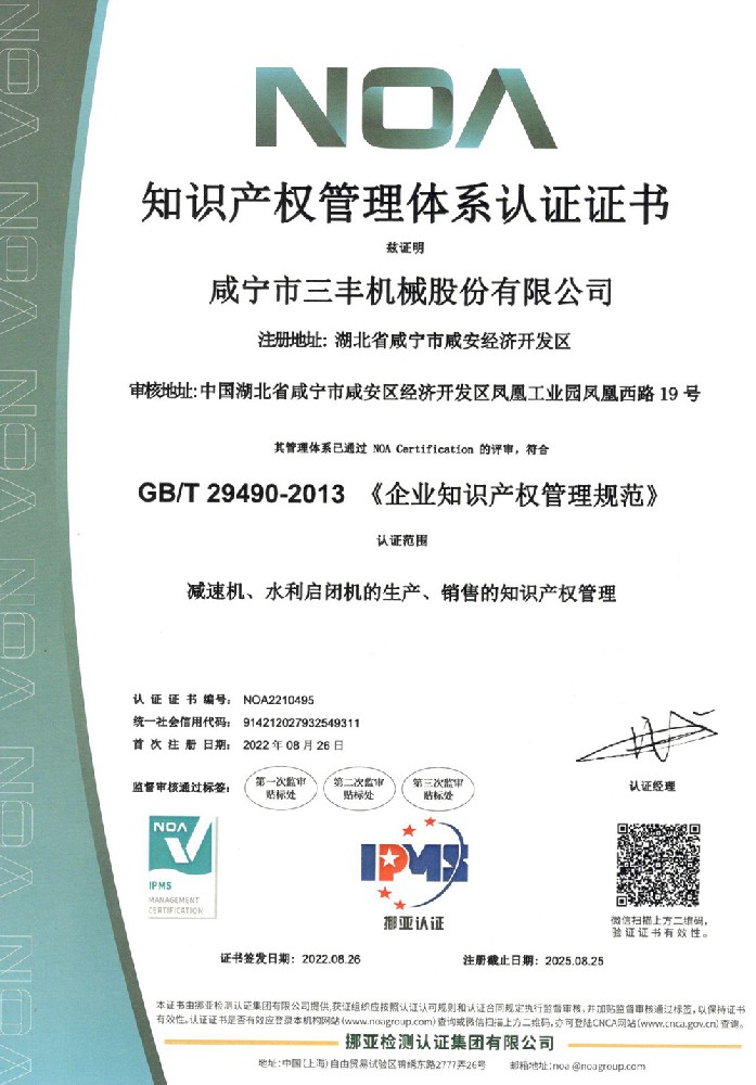 知識(shí)產(chǎn)權(quán)管理體系認(rèn)證證書